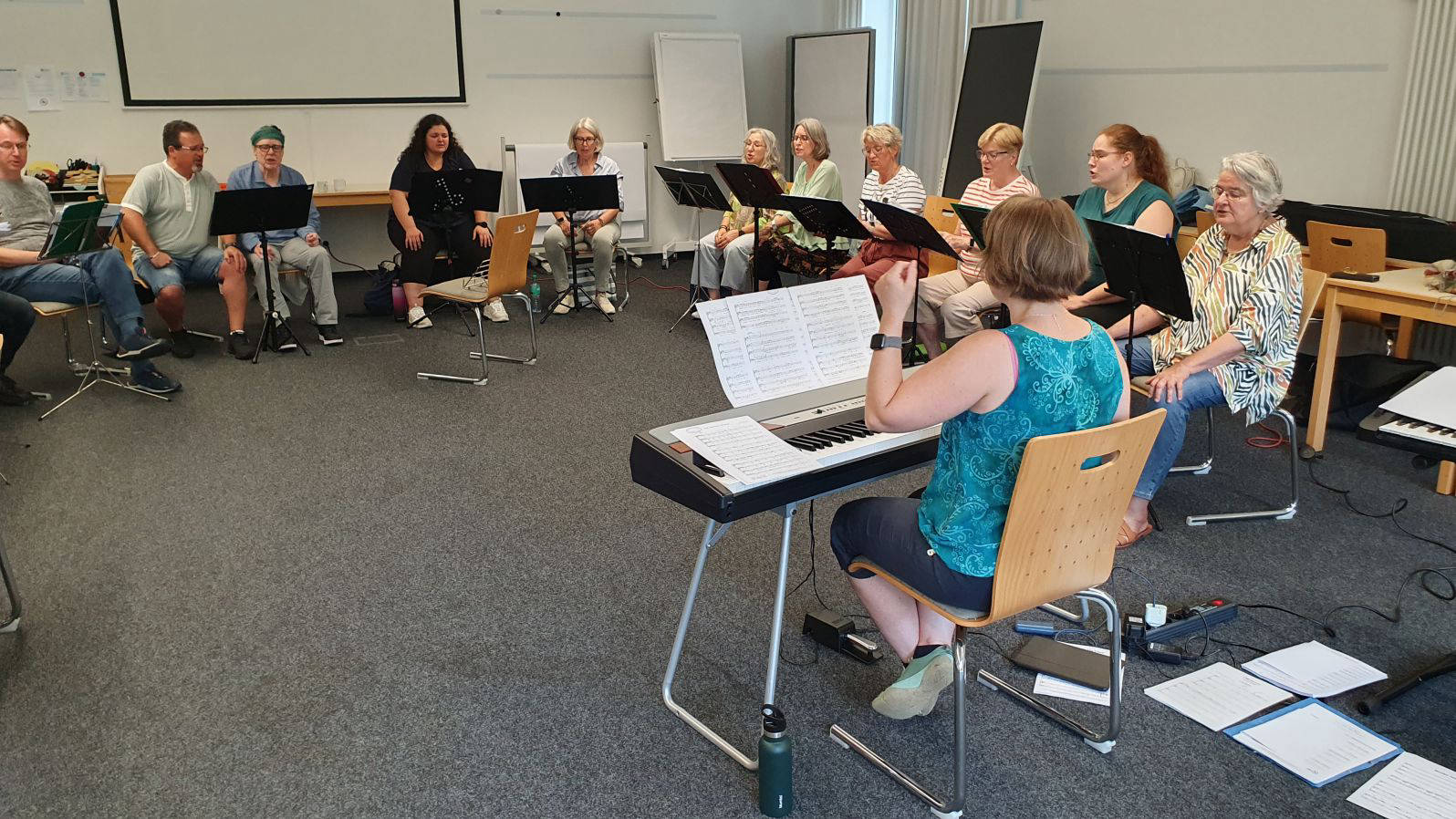 Das intensive Proben wurde von kleineren Pausen unterbrochen. In den jeweiligen Stimmlagen wurde sich auch schon mal zurückgezogen und eigenständig geprobt, um es anschließend wieder zusammenzuführen.